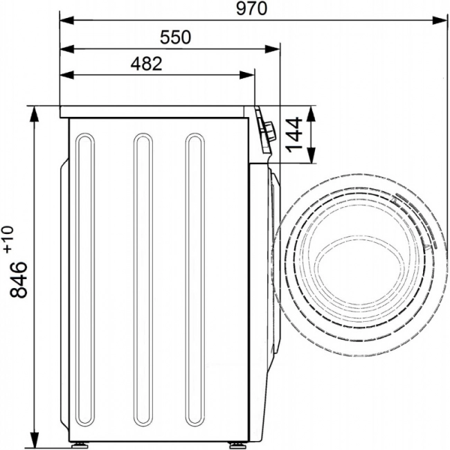 | Глубина по панели управления с учетом кнопок и ручек |